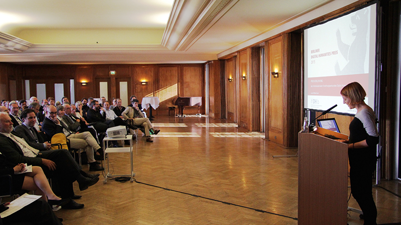 Berliner DH-Preis 2016: Laudatio für den 1. Platz des Berliner DH-Preis 2016 (The Manifesto Corpus, WZB): Dr. Anne Baillot (Centre Marc Bloch / Inria) (Foto: Jörg Fischer)