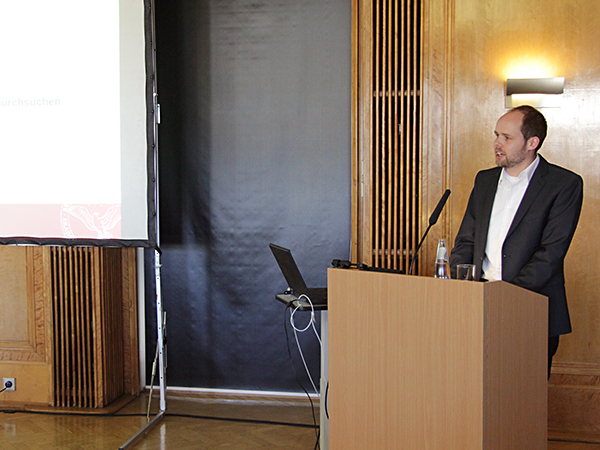 Berliner DH-Preis 2016: Abendvortrag Dr. Noah Bubenhofer (Universität Zürich, Leiter "Visual Linguistics" am Institut für Computerlinguistik) (Foto: Jörg Fischer)