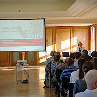 Berliner DH-Preis 2016: Laudatio für den 1. Platz des Berliner DH-Preis 2016 (The Manifesto Corpus, WZB): Dr. Anne Baillot (Centre Marc Bloch / Inria) (Foto: Swantje Bahnsen)