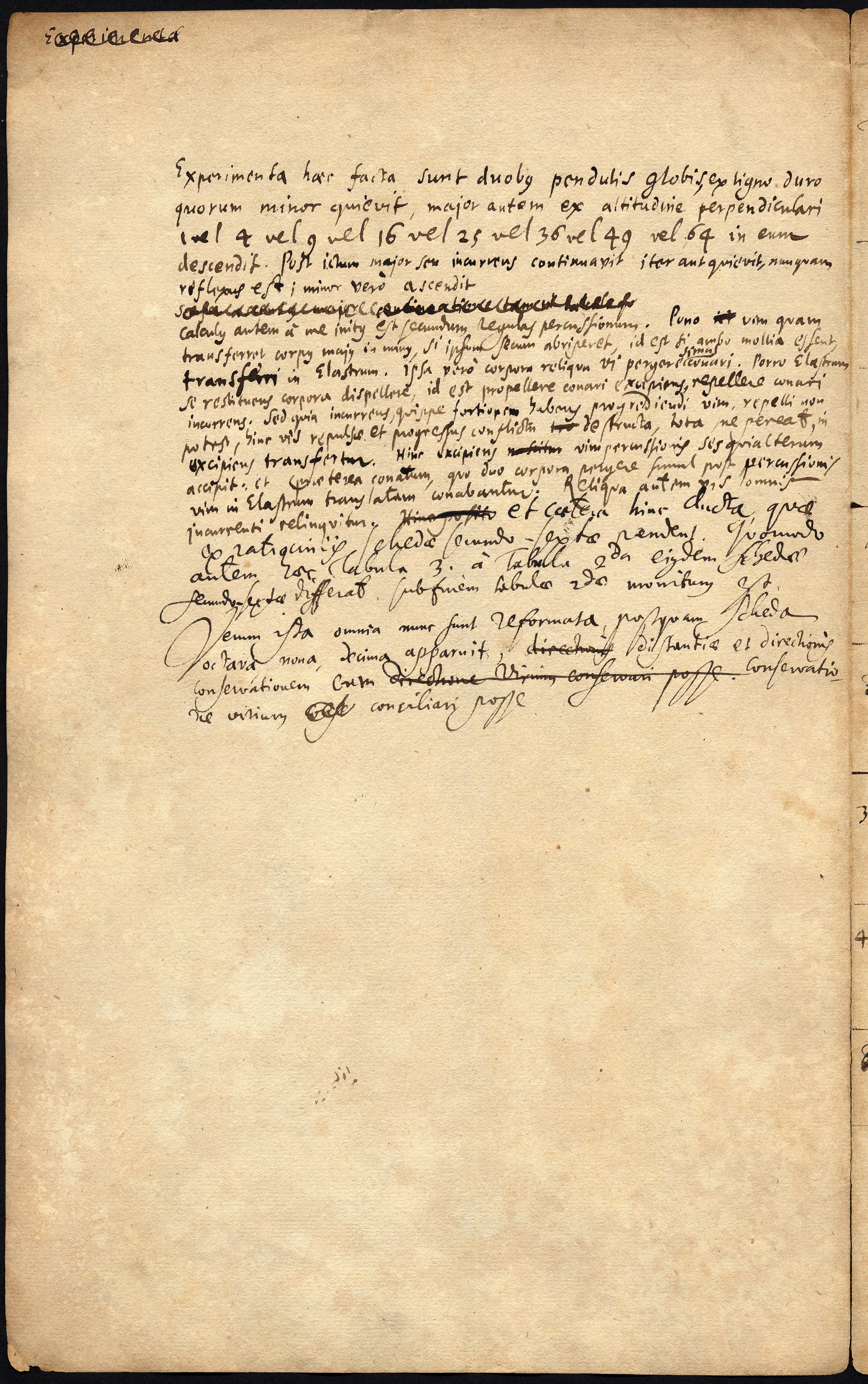 Dass die Phänomene, die sich beim Zusammenstoß von Körpern zeigen, anders nicht zu erklären sind, fand Leibniz erst heraus, nachdem er frühere Annahmen in Frage gestellt und schließlich verworfen hatte. Dieses Ringen schlug sich auf den Blättern von zehn Bögen bzw. Heften (schedae) nieder, die uns Leibniz gut geordnet und beschriftet in seinem Nachlass überliefert hat. Ein entscheidender Moment ereignet sich im zweiten Teil des sechsten Bogens, als Leibniz seine Berechnungsformeln mit Werten füttert, die aus Experimenten stammen.