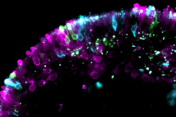 Fluoreszierend eingefärbtes Netzhautorganoid. Ein 1 Millimeter großes Netzhautorganoid ermöglicht die Gewinnung von bis zu 300.000 Photorezeptorzellen. Diese werden in Transplantationsstudien an blinden Mäusen eingesetzt um Behandlungmöglichkeiten von Netzhautstörungen beim Menschen zu entwickeln. Zudem können Netzhautorganoide auf einem Objektträger ausgesät werden, der die physiologischen Verhältnisse des menschlichen Auges nachstellt, bspw. durch künstliche Gefäße und Immunzellen. Diese sog. Retina-on-a-Chip-Modelle ermöglichen die Untersuchung von Arzneimitteln auf Nebenwirkungen und könnten künftig Tiermodelle ergänzen.