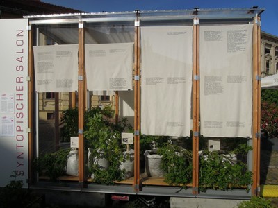 Die Installation "A POTATO PERSPECTIVE" der Künstlerin Åsa Sonjasdotter fand in Zusammenarbeit mit dem Prinzessinnengarten in Berlin und im Austausch mit dem Haus der Brandenburgisch-Preußischen Geschichte in Potsdam statt. Für zwei Wochen ist der Syntopische Salon ein Gewächshaus für acht verschiedene Kartoffelsorten. Thema des Projekts sind Formen landwirtschaftlicher Monokultur, die ein Ungleichgewicht der Ökosysteme verursachen, und dazu führen, dass unzählige regional spezifische Pflanzensorten nicht mehr angebaut werden. Anhand der Kartoffel und ihres ursprünglichen Sortenreichtums zeigt die Künstlerin Hintergründe für diesen Verlust an Vielfalt. Foto © Michaela Rotsch
