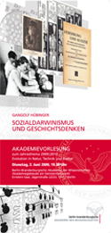 Der Vortrag widmet sich dem „Sozialdarwinismus“ als Sammelbezeichnung für die Formen eines kulturellen und sozialen Evolutionsdenkens. Er verfolgt im europäischen Rahmen die Umsetzung darwinistischer Ideen in ein politisches Ordnungsdenken und markiert deutsche Besonderheiten in der Zusammenführung von „Natur und Kultur“.